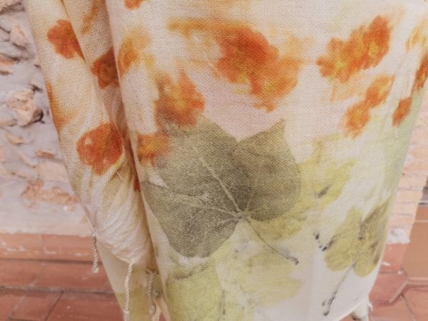 Estampat de forma natural i 100% sostenible amb plantes tintòries mitjançant la tècnica d’estampació botànica (Ecoprint) o mitjançant la tècnica de shibori.